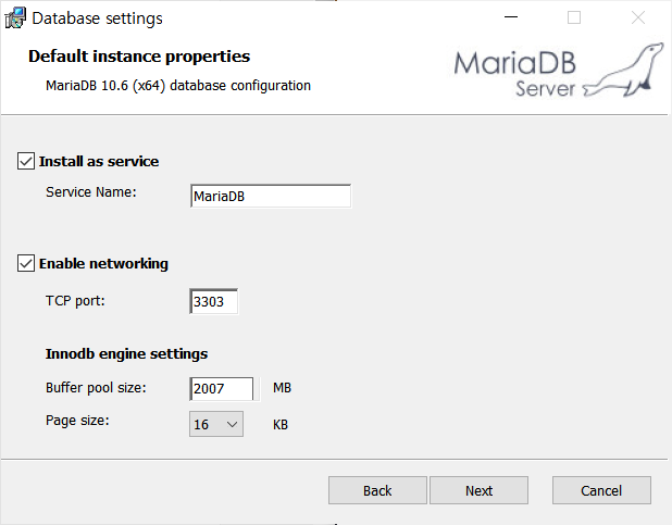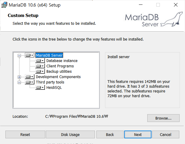 만약 마리아 DB설치전에 Mysql서버가 설치되었으면 3306포트 말고 다른 포트로 지정하는 것이 충돌을 방지함.
