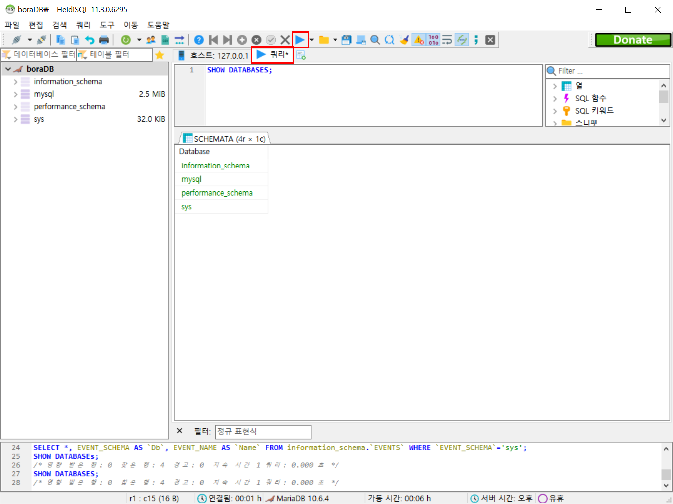 11. HeidiSQL 실행 (MariaDB 설치시 자동 설치 되었음 -> 시작프로그램에서 확인)