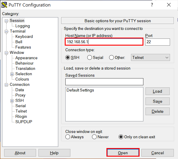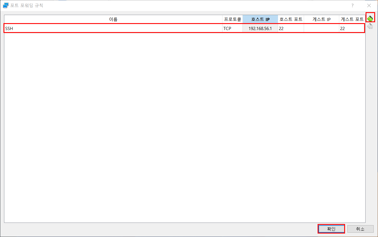 호스트IP와 호스트포트와 게스트 포트는 22로 해준다.